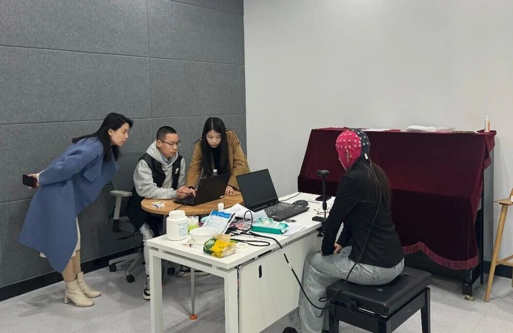 作为一项融合艺术与科学的创新型美育实践,本次课程特别引入脑科学研究方法,结合心理学量表与生理指标,系统探索音乐疗愈对情绪调节与认知功能的积极影响。课程团队通过眼动仪、脑电设备等先进技术,监测学员们在参与音乐活动时的注意力分配、工作记忆及情绪状态变化。同时结合血液生物标志物检测,从皮质醇、IL-6、BDNF等指标中寻找音乐干预与身心健康的关联证据。这不仅为音乐疗愈的效果提供了客观、科学的依据,也推动我校美育课程向实证化、体系化、跨学科化方向迈进。