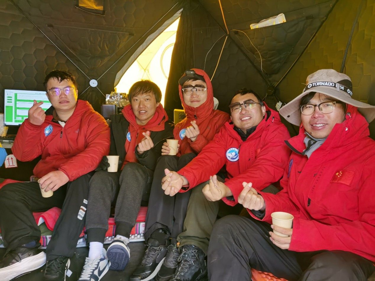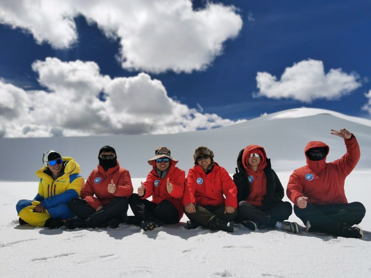 海拔5800米冰川帐篷里与学生合影(右2为林伟立老师)