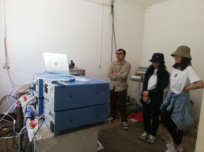 林伟立老师在珠峰站为参观人员介绍观测情况